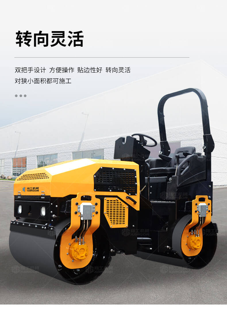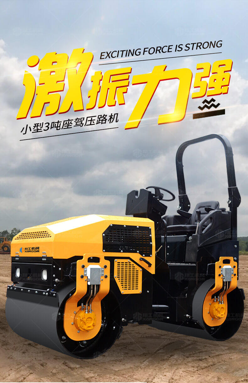 采用進口液壓系統,雙驅雙振,前后輪可單獨調節振動,亦可同時振動。液壓轉向,液壓驅動,液壓行走,液壓振動。進口英國鉑金斯柴油機三缸水冷四沖程,動力強勁,性能穩定。超快速度一小時可達12千米,無極變速。壓土,碎石,壓瀝青,壓回填土效果超乎想象。