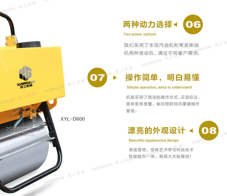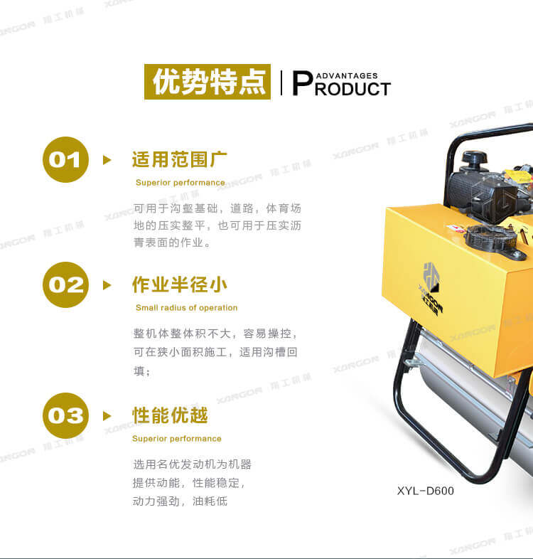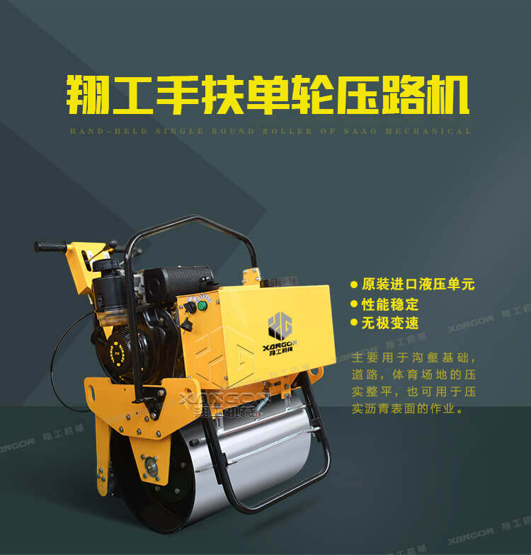手扶單輪(汽油)壓路機進口液壓系統手扶壓路機XYL-D600主要用于溝渠基礎,道路,體育場地的壓實整平,也可用于壓實瀝青表面的作業。