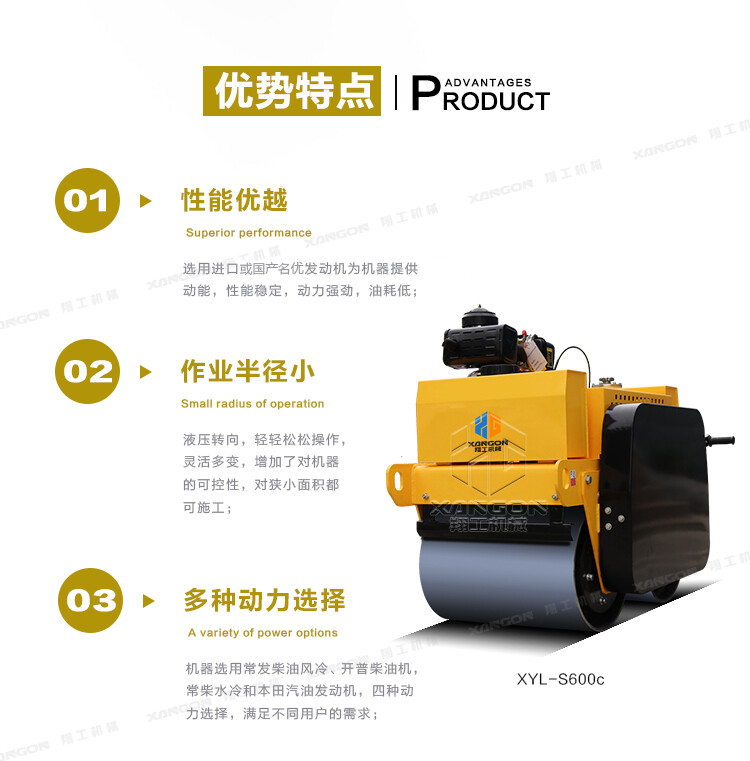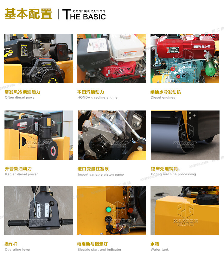 ·柴油動力采用電啟動,輕便靈活換向機構;雙驅雙振,保證了整體的壓實和爬坡能力;