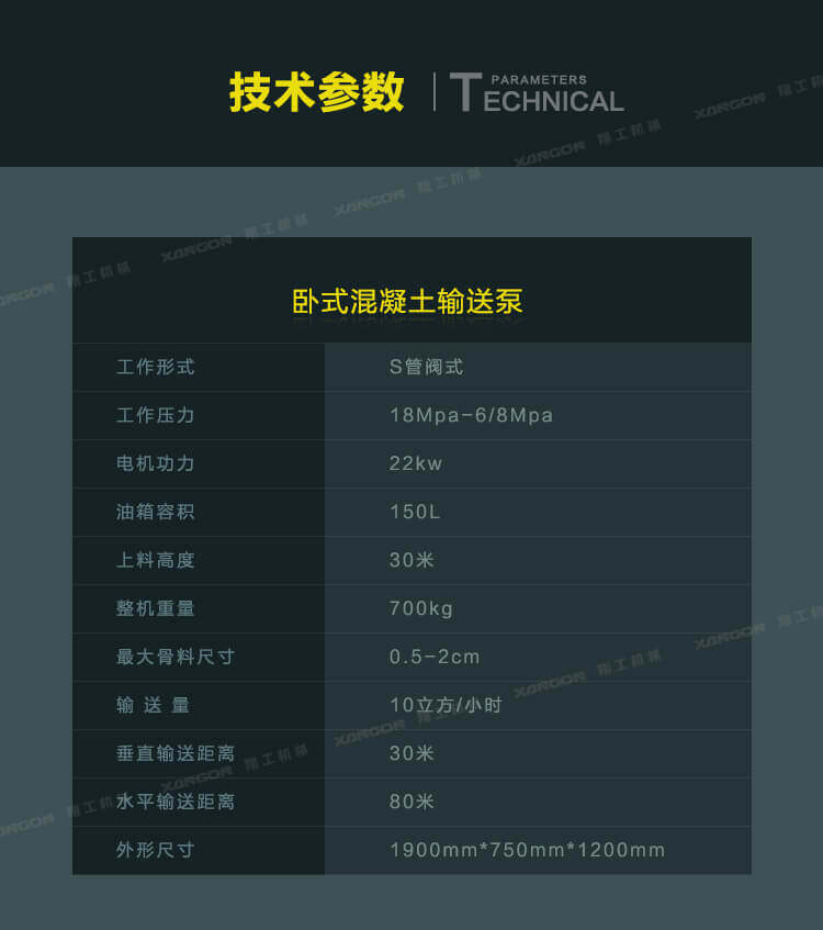 5.此泵機使用功率非常低只需22KW,考慮到了施工地用電的方便問題。