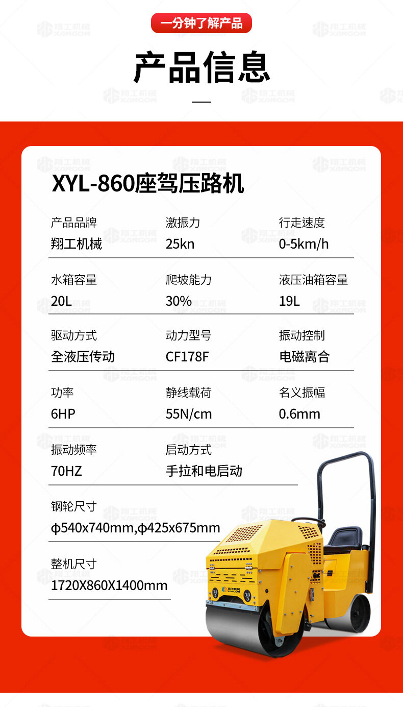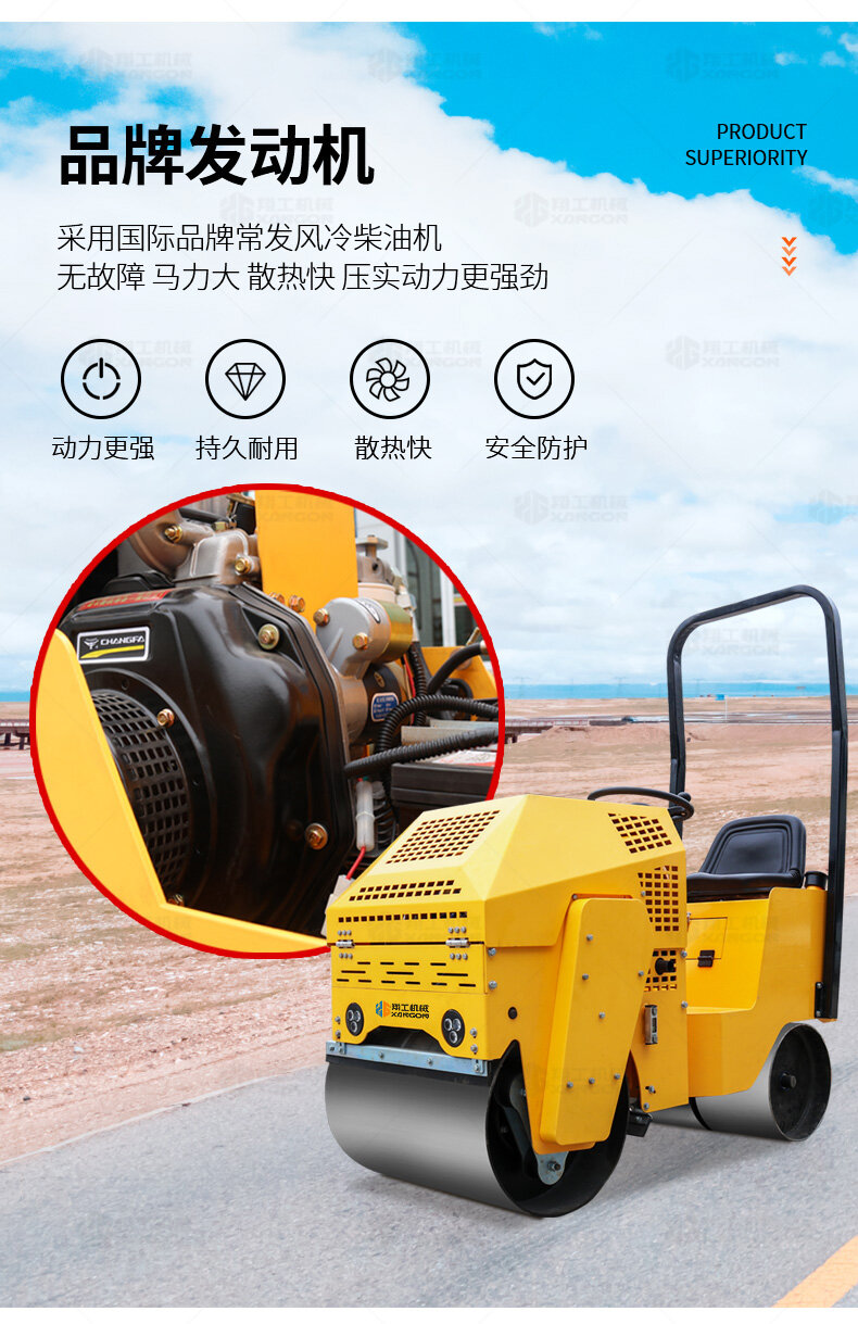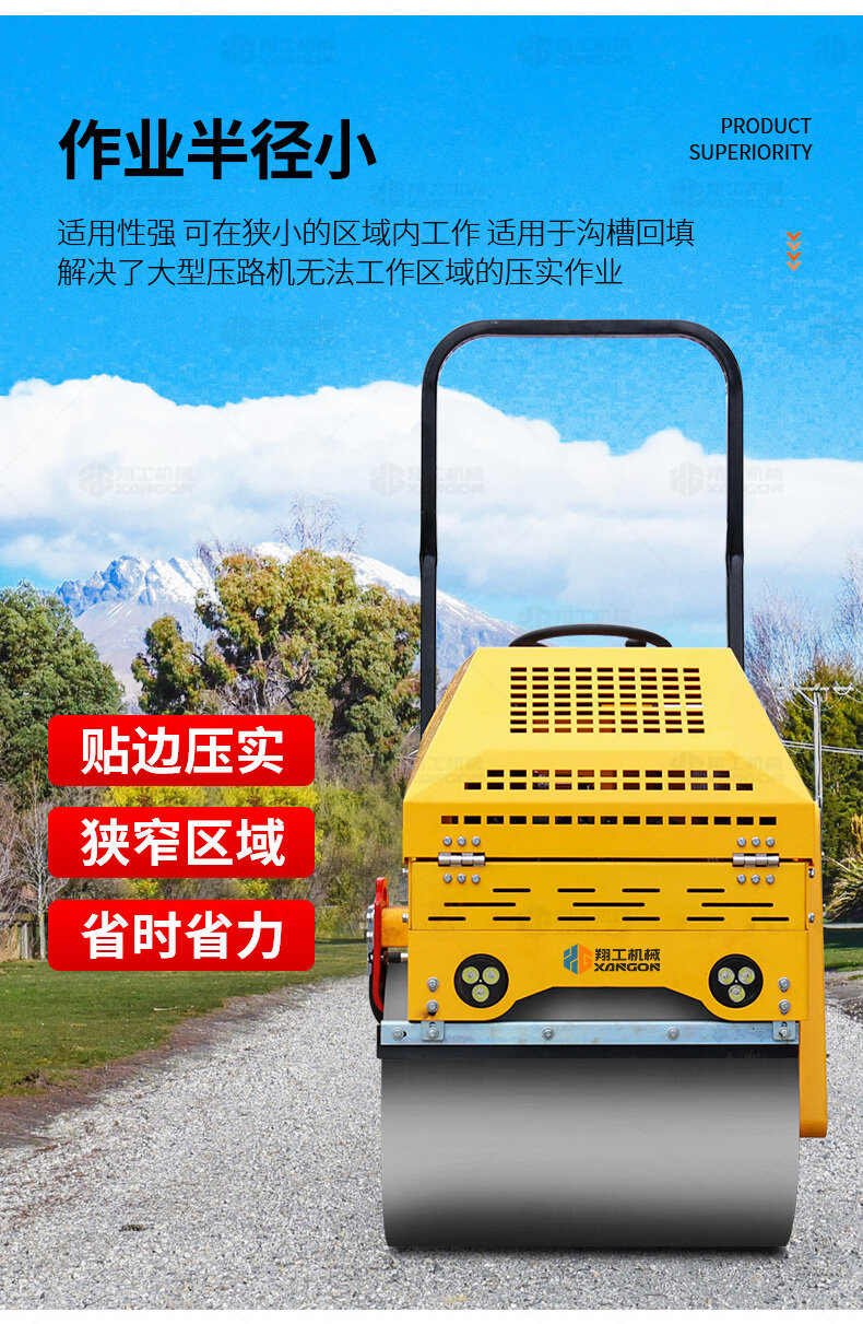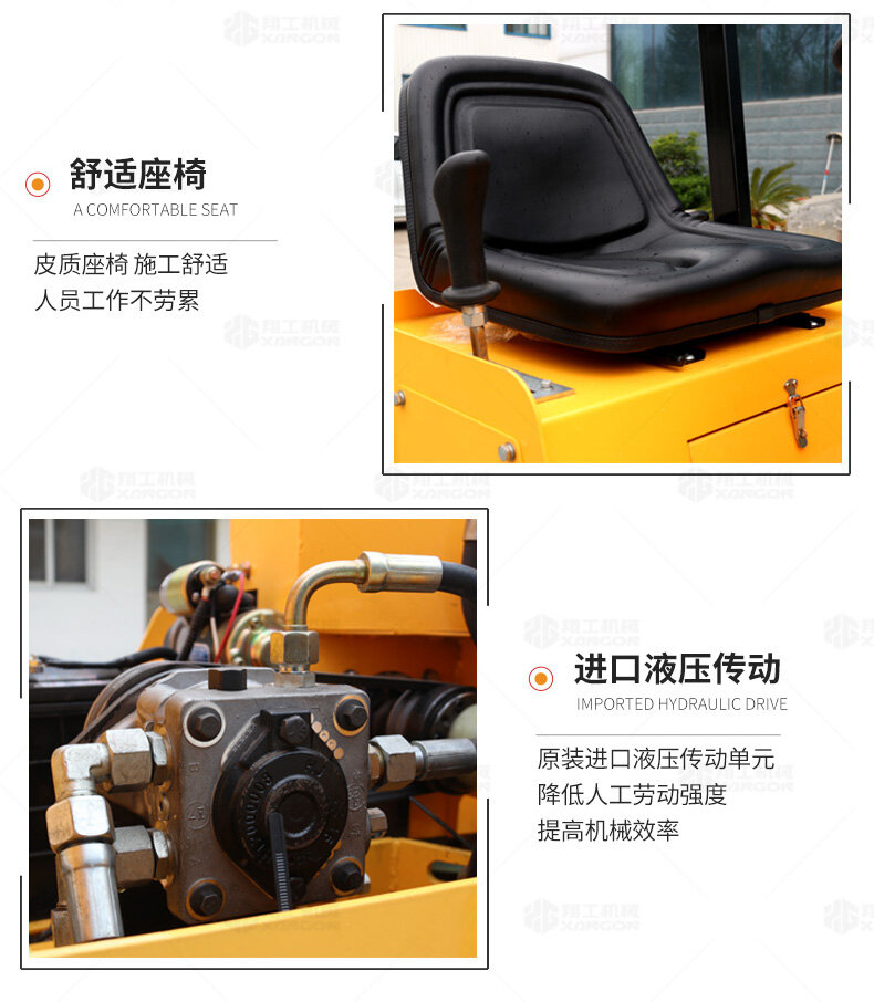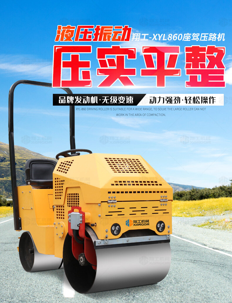 XYL-860座駕壓路機適用于各種溝槽沙土回填壓實、高層建筑地下室土方壓實、小區道路基礎壓實、各種草坪壓實、修補及各種小型工程的使用,解決了大型壓路機無法工作區域的壓實作業。