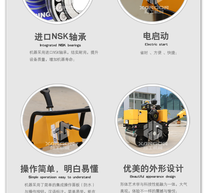 4.發動機電啟動,機器振動電磁離合控制,操作更加輕松方便;