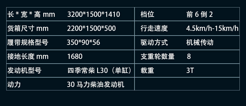 履帶運輸車是專門提供復雜路況運輸工作的機器,適用于普通運輸車輛無法或者不適合通行的地方。履帶運輸車以履帶代替了輪式行走,降低了對地面的損傷,同時履帶行走裝置降低了機器與地面的單位面積壓力,適用于山林、田地、沼澤、沙地、草地、雪地以及土質松軟或氣候條件不太發的接近角和離地角。