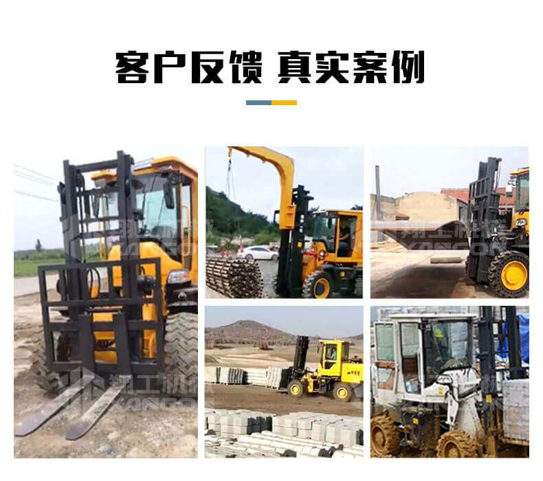 3.普通叉車只能在平整的路面上作業,而越野叉車既可以在普通路面上作業,還可以在山路泥路崎嶇道路作業,輪胎抓地力強,不打滑。