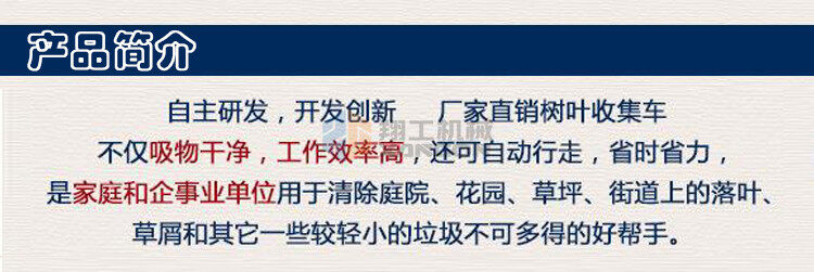 該設(shè)備工作效率高,比人工清掃效率高幾倍,可手推助力行走。垃圾儲(chǔ)存袋采用便捷式方式,便于更換垃圾,且使用成本較低。吸口可配置延長管,用來吸收綠化帶中的落葉和垃圾。吸口高度可調(diào),面對(duì)落葉較厚或大的法桐樹葉較多的區(qū)域,也能輕松收集干凈。目前以用在環(huán)衛(wèi)人行道、園林、物業(yè)小區(qū)、校園、公園、廣場(chǎng)、工廠廠區(qū)和車間等得到廣泛應(yīng)用。