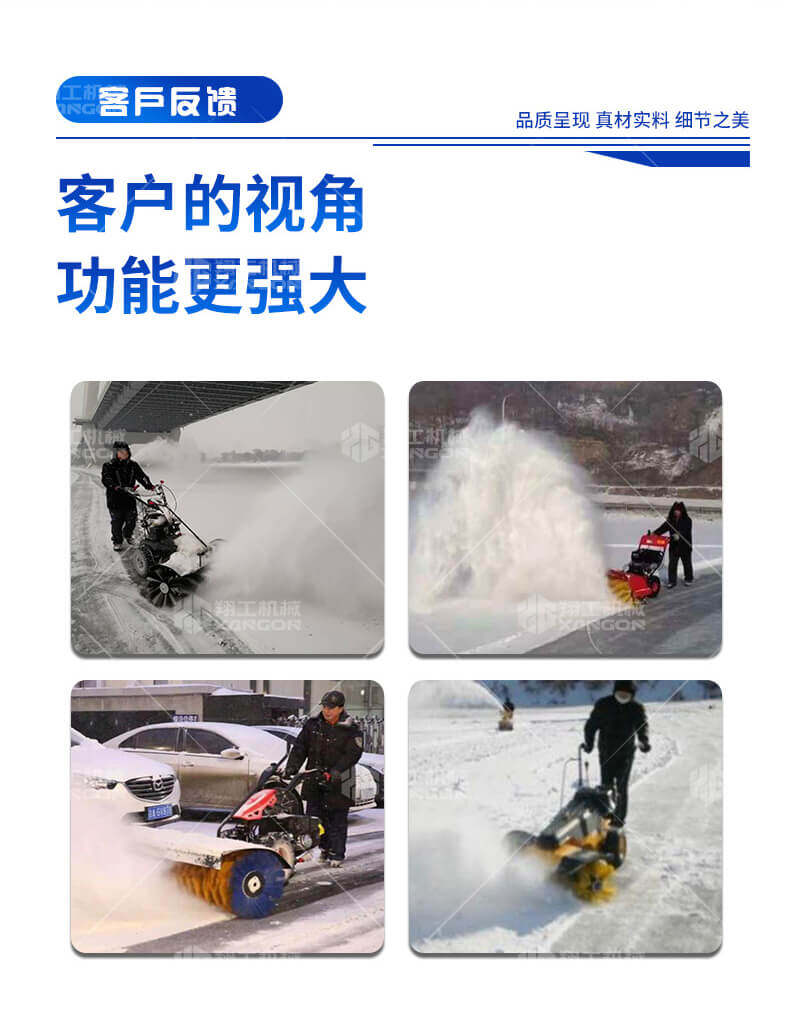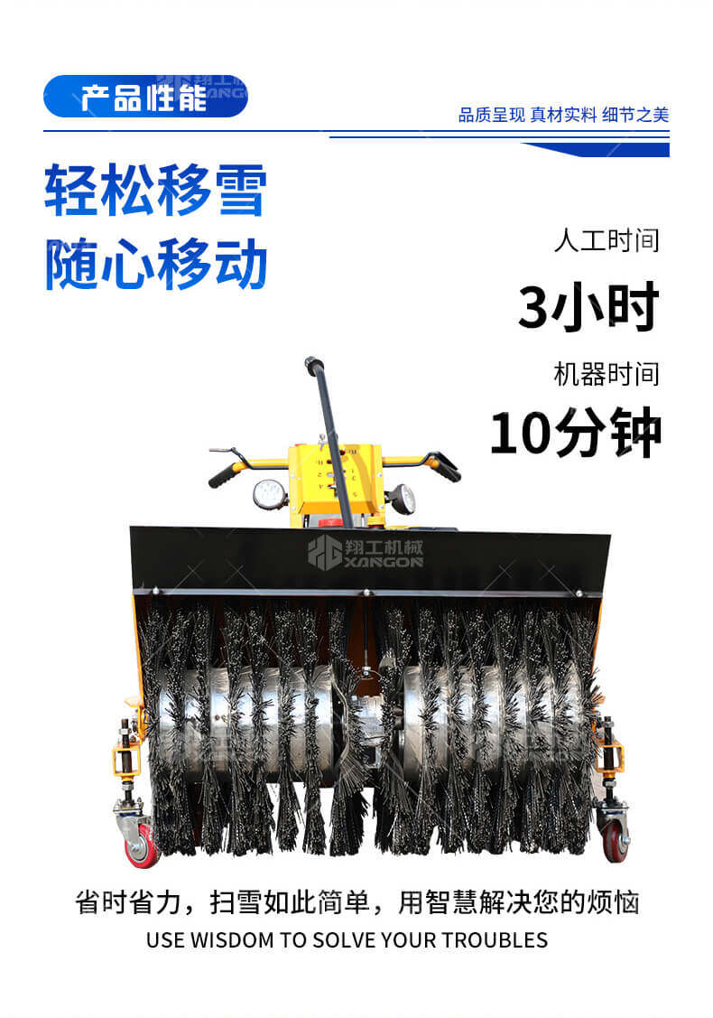 自行走多功能掃雪機(jī)是一款用于道路、廣場等大區(qū)域面積積雪清掃的滾刷式掃雪機(jī)。該滾刷具有極高的耐磨度,即使針對極度不平道路積雪的清掃也擁有高效的潔凈效果。該機(jī)小巧靈活,價(jià)格低、功能多,節(jié)省勞動(dòng)力,一臺機(jī)器頂10個(gè)-20個(gè)人工。是機(jī)關(guān)、單位、學(xué)校、停車場、廣場、物業(yè)小區(qū)、花園、非機(jī)動(dòng)車道等廣泛選用的冬季清雪機(jī)械。一機(jī)多用型,經(jīng)濟(jì)實(shí)用!