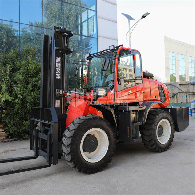 3.普通叉車只能在平整的路面上作業,而越野叉車既可以在普通路面上作業,還可以在山路泥路崎嶇道路作業,輪胎抓地力強,不打滑。