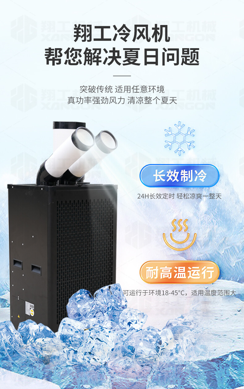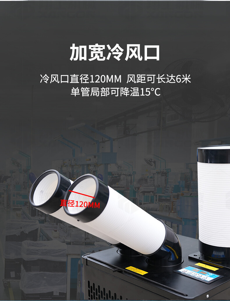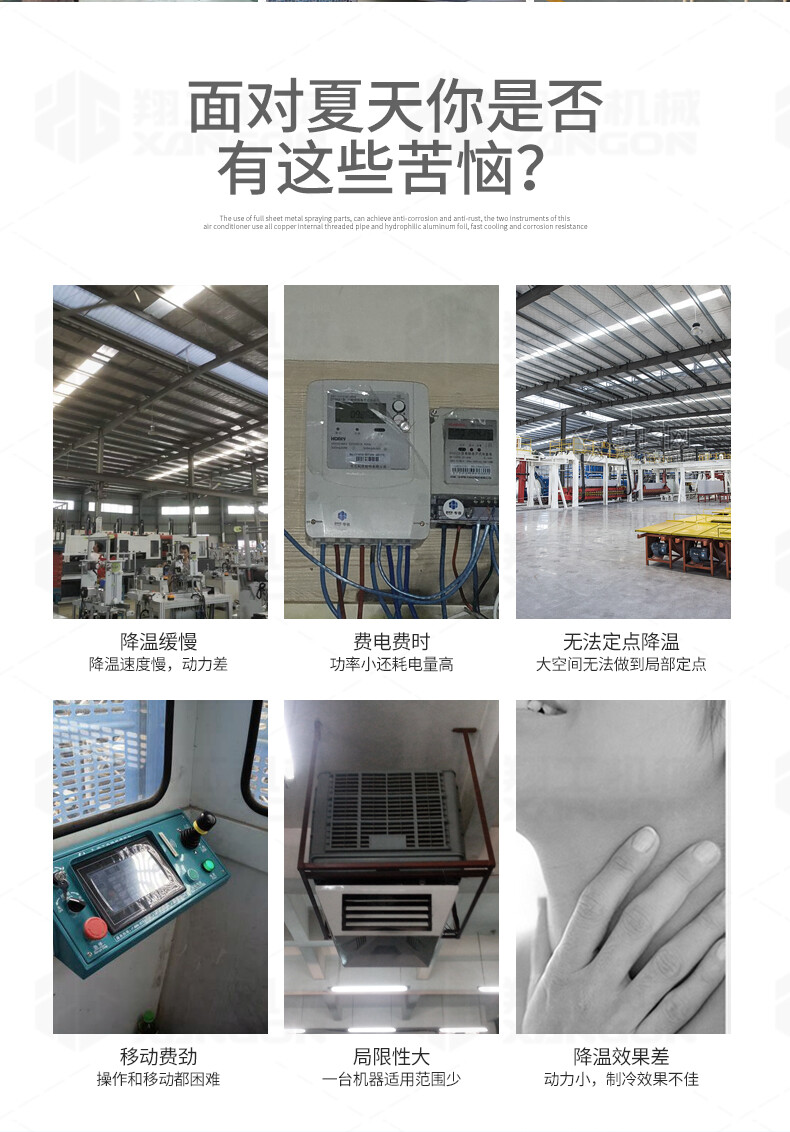 適應(yīng)各種大面積場(chǎng)所快速降溫:辦公場(chǎng)所降溫 汽車維修降溫 車間制冷 室內(nèi)制冷 集裝箱制冷 線上降溫 廚房降溫 車間崗位降溫
